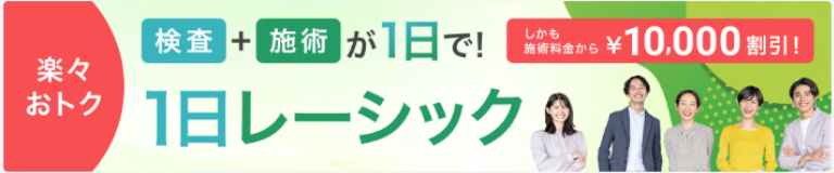 1日レーシックにすると更に1万円引き