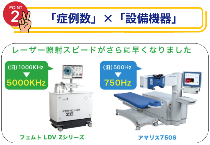 また、最新のレーザー機器(アマリス750Sなど)は照射スピードが極めて速いため、手術時間が大幅に短縮されます。